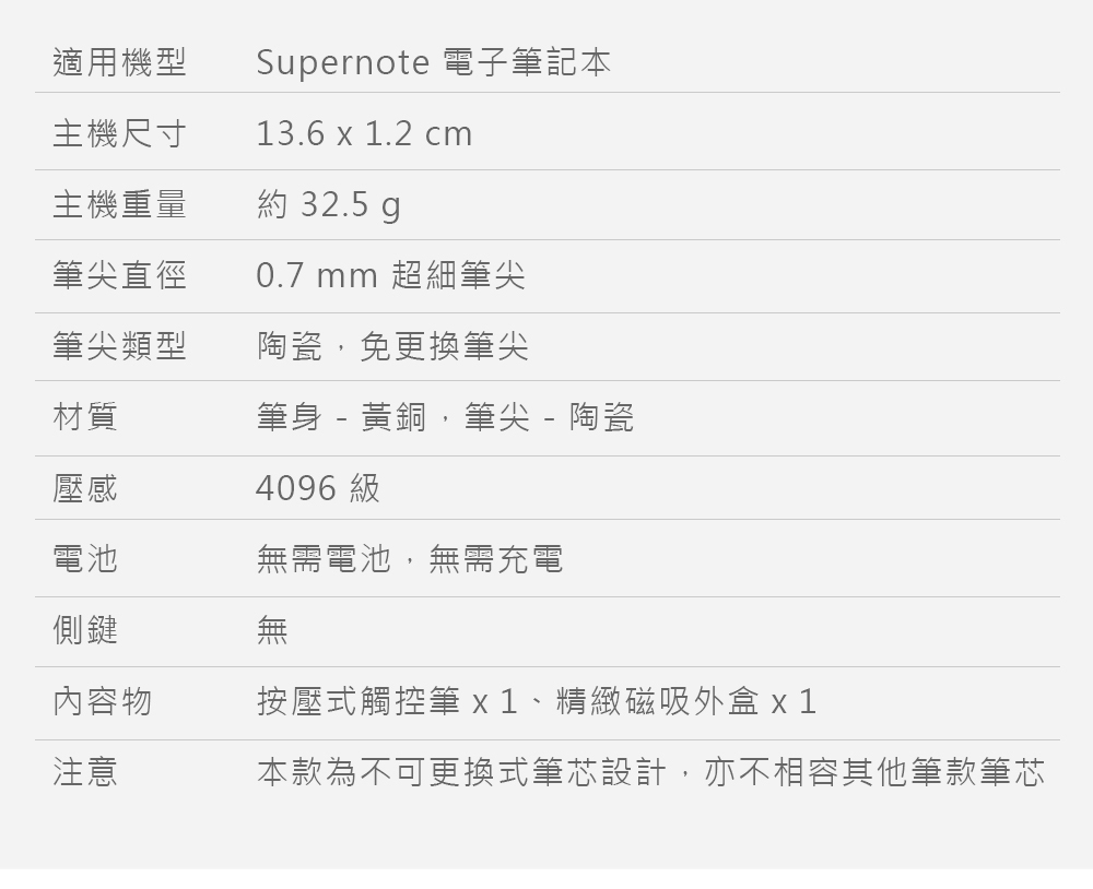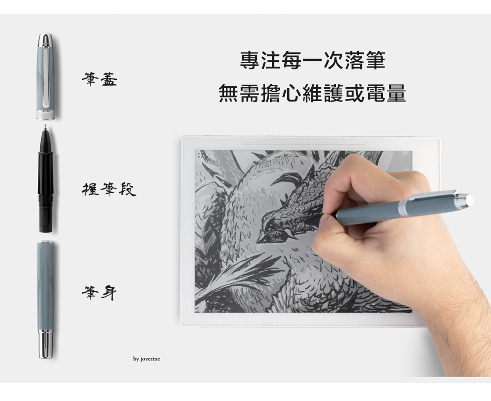 不需充電、不需更換,始終維持一致的書寫體驗。
