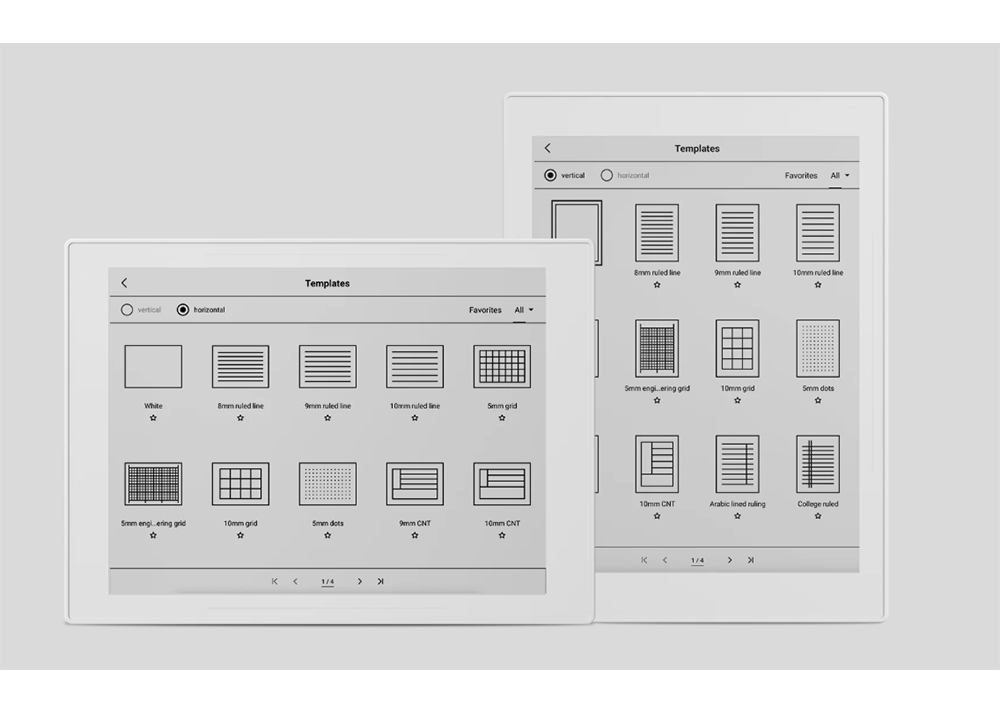 支援橫向版面書寫,搭配現成模板,滿足更多書寫與思考情境。