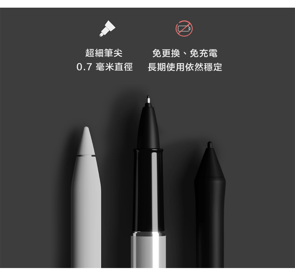 全球最細的數位筆尖,精準書寫體驗,無需昂貴更換或充電。